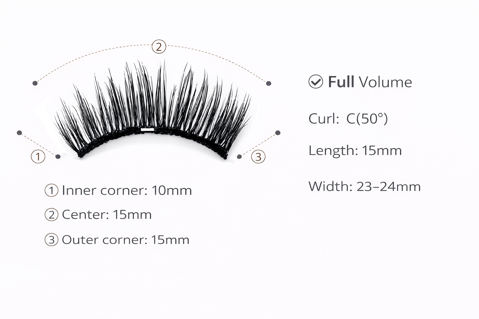 - Curl: C(50°) – creates a lifted, open-eye effect